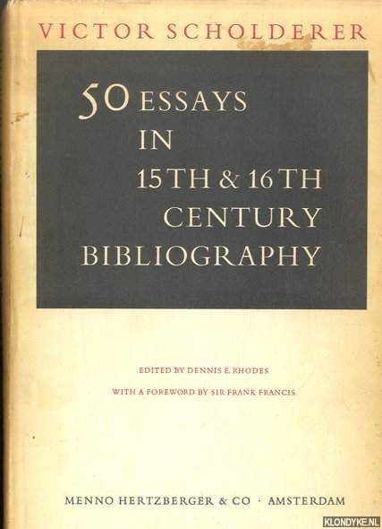 Scholderer, Victor - 50 essays in 15th & 16th century bibliogra