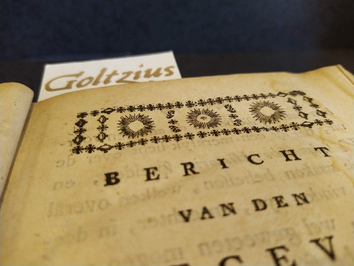 | Bijzonderheden: | [Leiden, Luzac en Van Damme, 1781-1782], 8vo., half leather binding with ribbed spine and titleplate, sprinkled edges, 6 parts (of 12) in two volumes, 12+195+202+187+8+199+204+192 pp. The first volume has a stained fore edge (seeping through to th... |