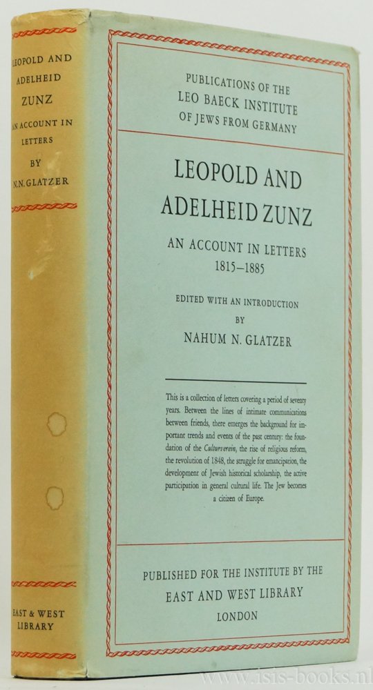 | Titel: | Leopold and Adelheid Zunz. An account in letters 1815 - 1885. Edited with an introduction by Nahum N. Glatzer. |