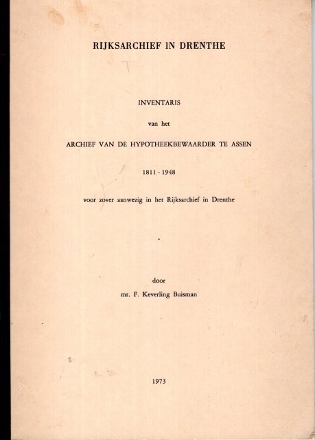 | Titel: | Inventaris van het archief van de hypotheekbewaarder te Assen, 1811-1948, voor zover aanwezig in het Rijksarchief in Drenthe. |