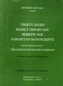 | Titel: | Catalogue of thirty-eight highly important Hebrew and Samaritan Manuacripts from the collection formed by the late David Solomon Sassoon |