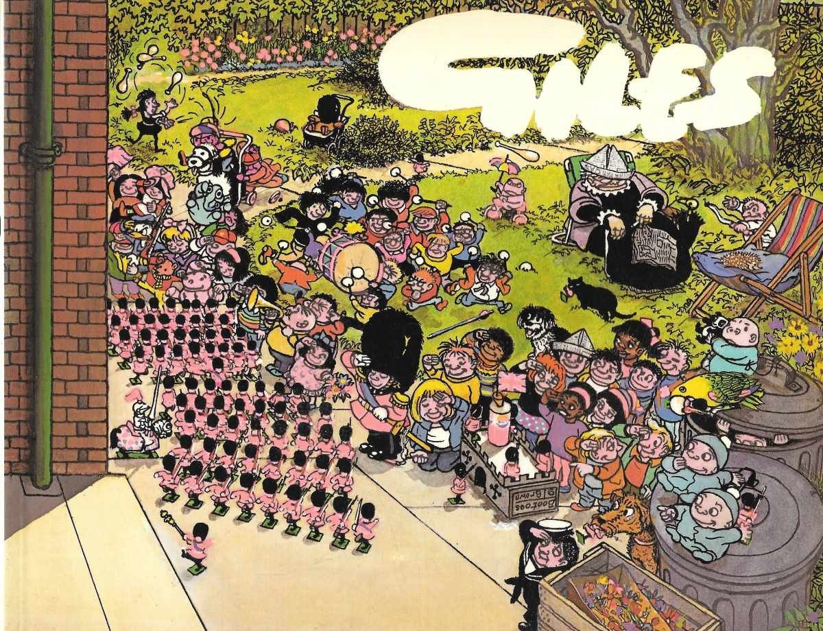 Giles (38 serie) Ronald "Carl" Giles OBE (29 september 1916 - 27 augustus 1995), vaak simpelweg Giles genoemd , was een Cartoonist die vooral bekend stond om zijn werk voor de Britse krant de Daily Express. Zijn tekenfilmstijl was één actueel, zeer gedetailleerd paneel, meestal met veel meer aan de hand dan de enkele grap. Bepaalde terugkerende personages verwierven veel populariteit, met name de uitgebreide Giles-familie , die voor het eerst verscheen in een gepubliceerde cartoon op 5 augustus 1945 en een prominente plaats in de strip kreeg. De meest herinnerde hiervan is de raadselachtige matriarch van de familie, gewoon bekend als oma. |