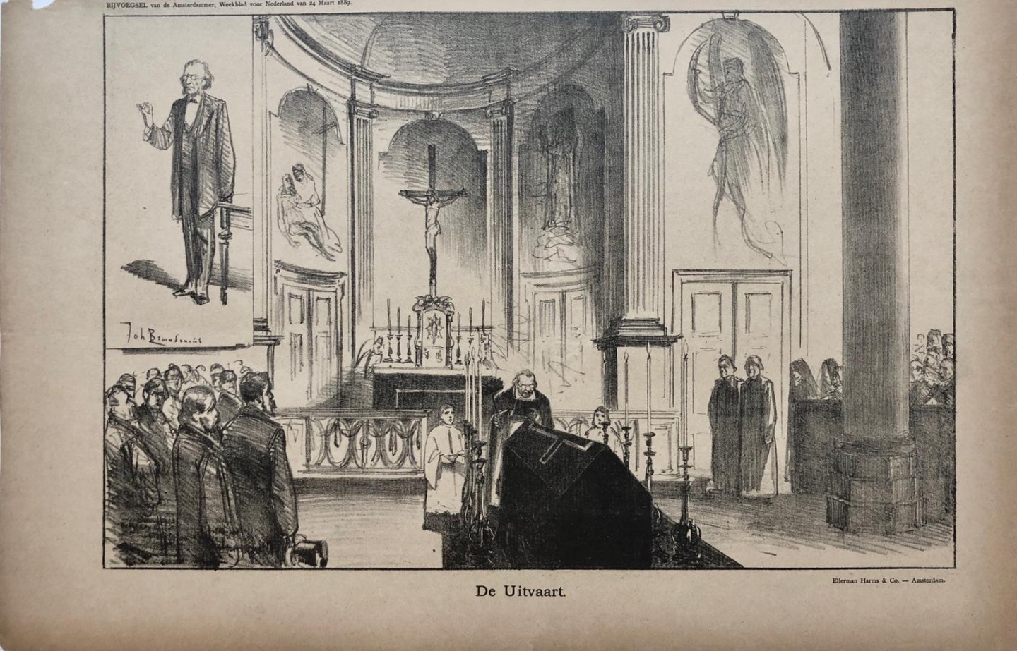 | Titel: | [Original lithograph/lithografie by Johan Braakensiek] De Uitvaart, 24 Maart 1889, 1 pp. |