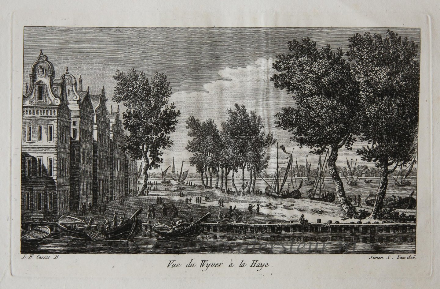 Louis-Francois Cassas (1756-1827) - [Antique print, etching] Vue de Wyver a' la Haye (hofvijver Den Haag, The Hague), published 1806.