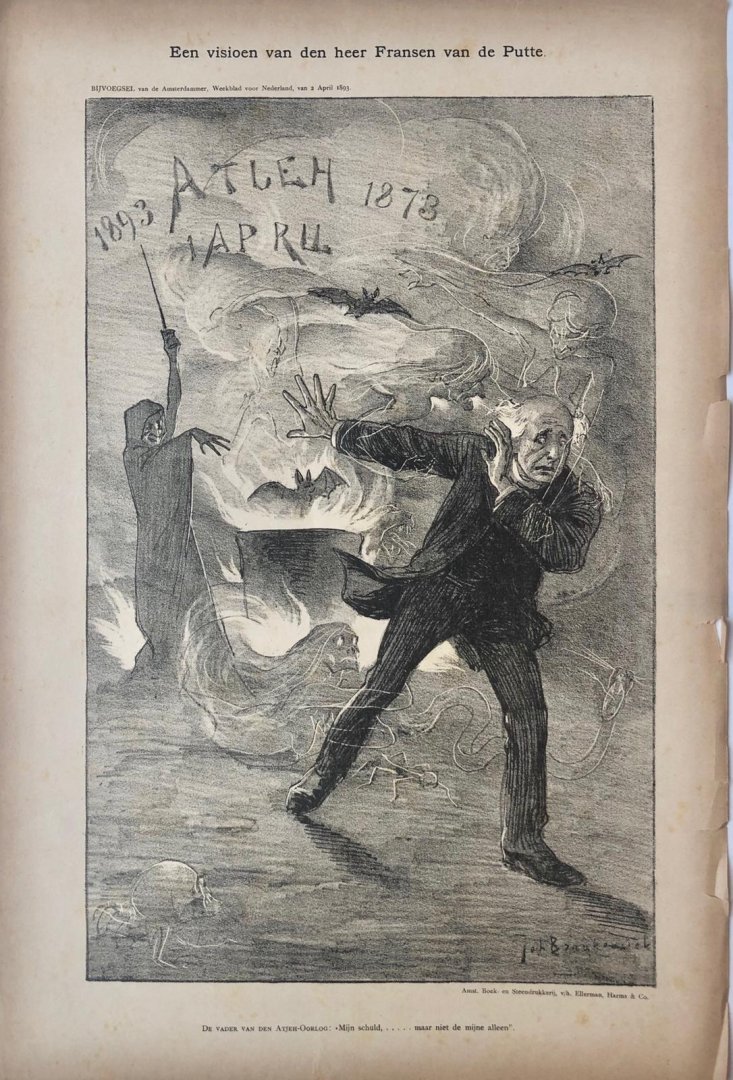 | Bijzonderheden: | 440 x 300 mm. Bijvoegsel van de Amsterdammer, Weekblad voor Nederland van 2 April 1893. Een visioen van den heer Fransen van de Putte. De vader van den Atjeh-Oorlog. Amst. Boek- en Steendrukkerij, v/h. Ellerman, Harms & Co. |
