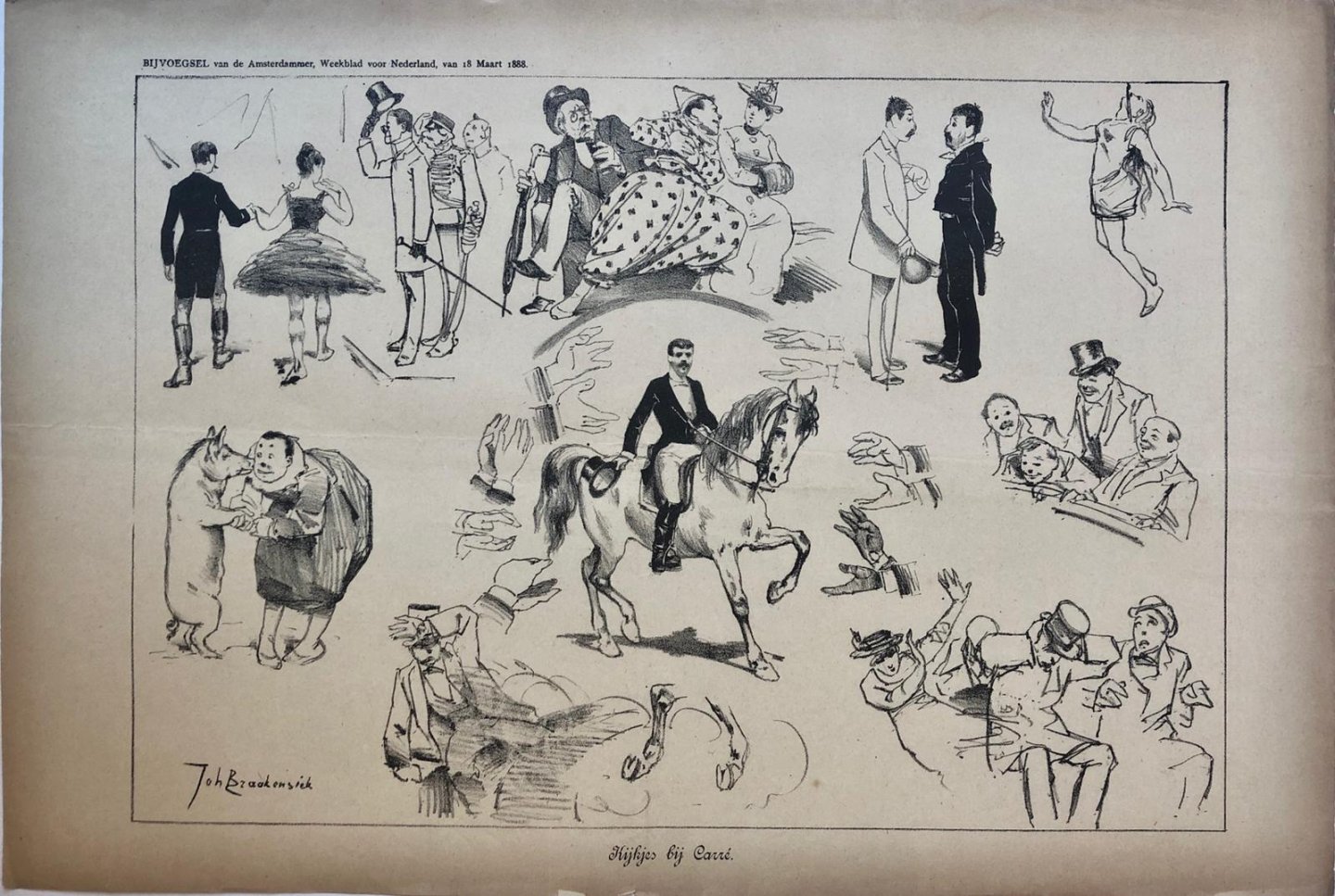 | Bijzonderheden: | 300 x 440 mm. Bijvoegsel van de Amsterdammer, Weekblad voor Nederland van 18 Maart 1888. Kijkjes bij Carré (theater Carré Amsterdam). |