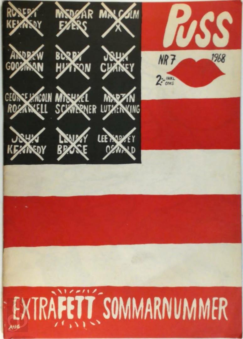 | Meer info: | illustrated in black-and-white and redwith original artwork in the form of satirical cartoons, drawings and collages; Puss (in English, Kiss) was a Swedish counterculture magazine published between 1968 and 1973 |
