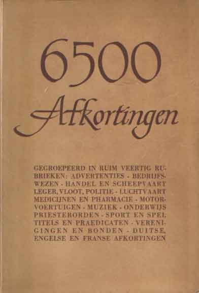 Titel: 6500 afkortingen en kentekenen uit onze taal en de drie moderne talen verzameld en toegelicht door Peregrina