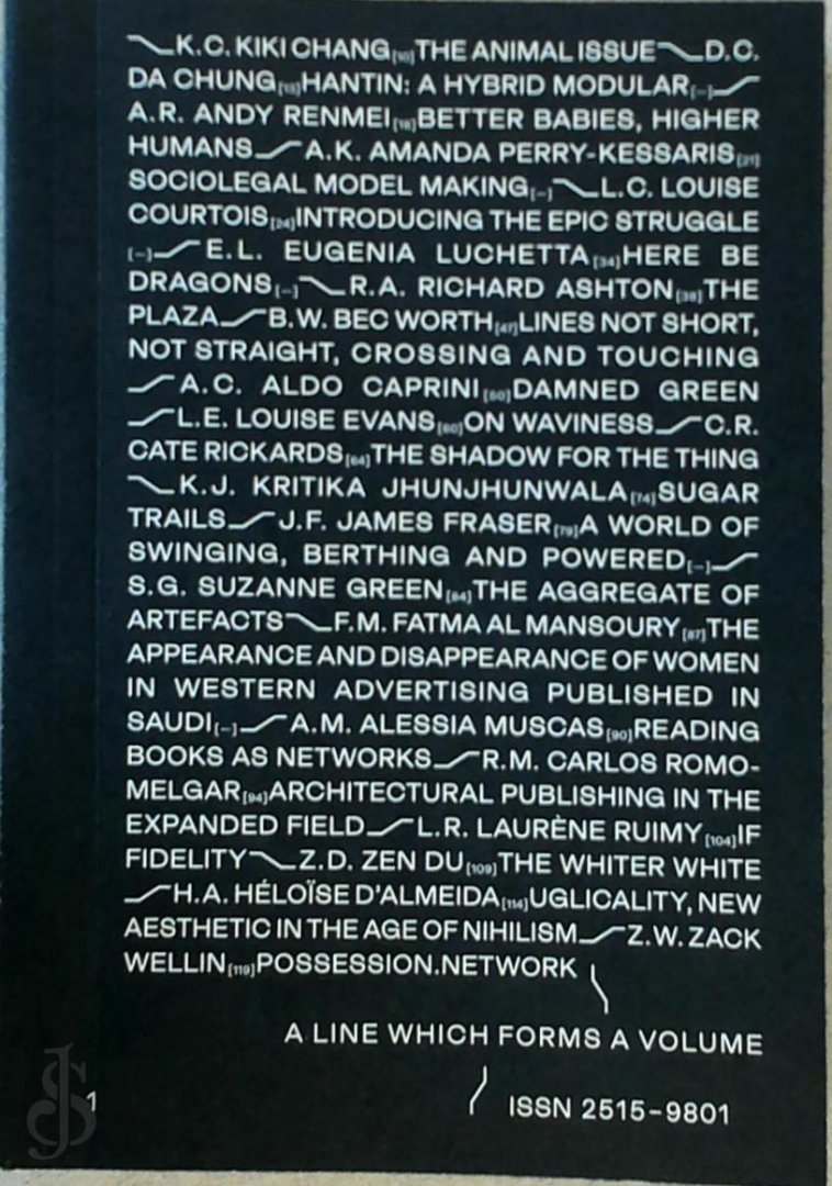 The first edition of a critical reader of graphic design-led research that is edited, written, designed, and published by MA Graphic Design Media course participants at the London College of Communication. \nA Line Which Forms a Volume takes its name from a subheading in the 1996 essay “The Book as Object,” written by Michel Butor. Butor writes that threads of thought and speech must be set into lines, lines divided into columns, and columns stacked along a third axis of depth to form a volume. The notion of ‘volume’ as a publication, as well as the space that something occupies and as a quality of something audible, lends itself to the endeavor of A Line Which Forms a Volume to make graphic design research public.\nA Line Which Forms a Volume is curious, evolving and current, and aims to thread the research of participants into the wider contexts of design criticism and publishing.\nEdited by Katie Evans and Gabriela Matuszyk