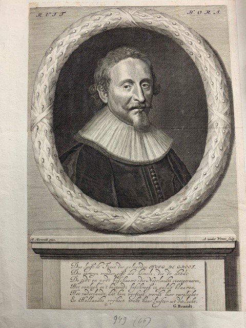 Hugo Grotius, engraved portrait of Hugo de Groot by Abraham van der Wenne after M. van Miereveld. 27x18cm, including margins, clean and in good state, 1681, with a 6 line poem by G. Brandt, taken from Hugo de Groot, Nederlandtsche Jaerboecken en Historien, Sedert het jaer MDCIX [...], Amsterdam 1681. Hollstein et al. 1949-2010 , dl. 52 (1998), p. 9, nr.1, E.A. van Beresteyn, Iconographie van Hugo Grotius, Den Haag 1927, p. 87-88, nr. 25.