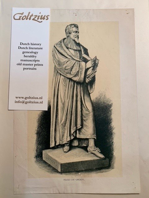 | Meer info: | Hugo de Groot, statue of Hugo de Groot by F.L. Stracke in Delft. 26x17,5cm, colour lithograph print of the statue erected in 1886 in Delft designed by F.L. Stracké jr. 19th century colour lithograph. |