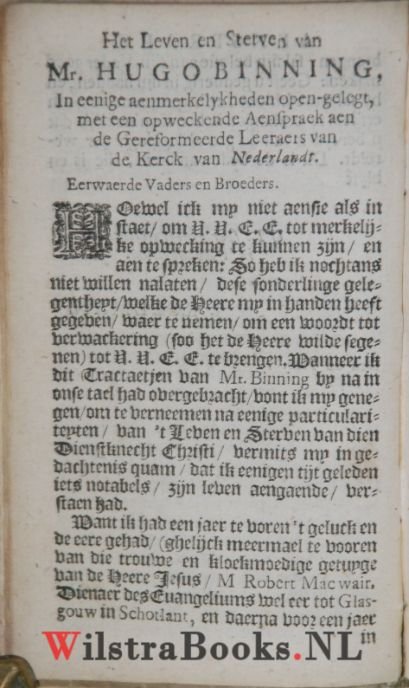 | Titel: | Ettelyke gronden van de christelycke religie, klaerlyck geopent, en sonderling tot de practijck gebracht / door mr. Hugo Binning ... ; Vertaelt door Jacobus Koelman ... |