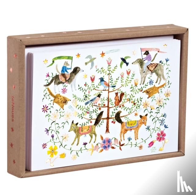 Flaptekst Aiko Fukawa's Luxe Foil Notecard box contains a set of 10 foil accented all occasion notecards packaged in a sturdy, foil-patterned box. |