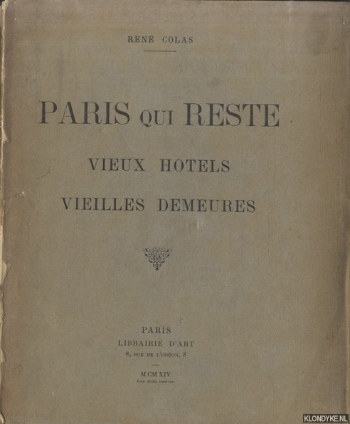 Colas, René - Paris qui reste. Vieux hôtels, vieilles demeures