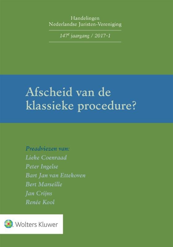 Met de komst van mediation, bindend advies, arbitrage, geschillencommissies en klachtencommissies is de traditionele beslechting van geschillen door de klassieke overheidsrechter niet meer vanzelfsprekend. Moeten we dus afscheid nemen van de klassieke procedure? Deze uitgave zoekt een passend antwoord op die vraag. Niet alleen zijn er nieuwe manieren om geschillen te beslechten, ook de procedure bij de overheidsrechter is veranderd. Denk bijvoorbeeld aan regiezittingen, de nieuwe zaaksbehandeling en het digitaal procederen met een bijbehorende nieuwe basisprocedure in het burgerlijk recht. Daarnaast beïnvloedt nieuwe informatietechnologie de rechtspraak. Afscheid van de klassieke procedure belicht vanuit civiel-, straf- en bestuursrechtelijk oogpunt de vraag of we afscheid moeten nemen van de klassieke procedure bij de overheidsrechter. In deze preadviezen wordt op een degelijke, creatieve en onderbouwde wijze op de vraagstelling ingegaan.