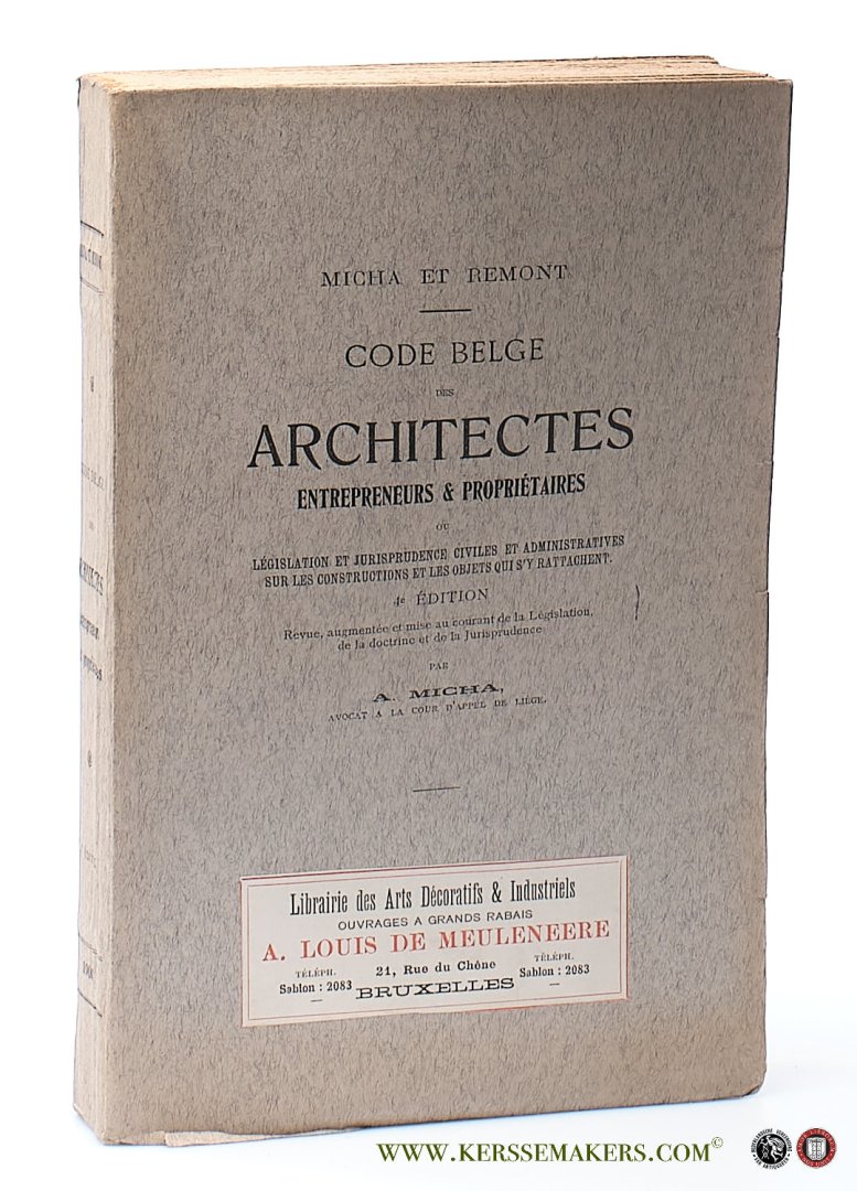 Micha et Remont. - Code belge des architectes, entrepreneurs et