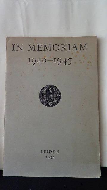 In Memoriam 1940- 1945. In 1952 werd het gedenkboek In Memoriam 1940-1945 gepubliceerd, samengesteld in opdracht van het College van Bestuur. Het boek bevat een namenlijst van 663 studenten, medewerkers en alumni die omkwamen in vernietigingskampen, ge?xecuteerd werden omdat ze in het verzet zaten, of de oorlog in Azi? niet overleefden. De namen zijn op volgorde van aankomstjaar geordend, en daarbinnen op alfabet. Achteraan zijn nog negen namen opgenomen van ?overige cives? - medewerkers van de universiteit. Zoals Johannes Zijlstra, ?technicus 2e klasse rijksmuseum voor natuurlijke historie? die op 23 mei 1945 overleed aan de gevolgen van de Hongerwinter. l Academisch Historisch Museum Leiden. 1952. Formaat 20 x 29 cm. Goede staat