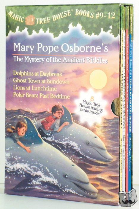 Annotatie Jack and Annie experience a series of time-travel adventures. Flaptekst The #1 bestselling chapter book series of all time celebrates 25 years with new covers and a new, easy-to-use numbering system! Morgan le Fay, the magical librarian of Camelot, challenges Jack and Annie to find the answers to four riddles. To do so, they must travel under the sea and to the Wild West, the African plains, and the frozen Arctic. It's a difficult and dangerous task, but if Jack and Annie succeed, they will become Master Librarians! Books in this set include: Dolphins at Daybreak (#9), Ghost Town at Sundown (#10), Lions at Lunchtime (#11), and Polar Bears Past Bedtime (#12). Did you know that there's a Magic Tree House book for every kid? Magic Tree House: Adventures with Jack and Annie, perfect for readers who are just beginning chapter books Merlin Missions: More challenging adventures for the experienced reader Super Edition: A longer and more dangerous adventure Fact Trackers: Nonfiction companions to your favorite Magic Tree House adventures Have more fun with Jack and Annie at MagicTreeHouse.com! |