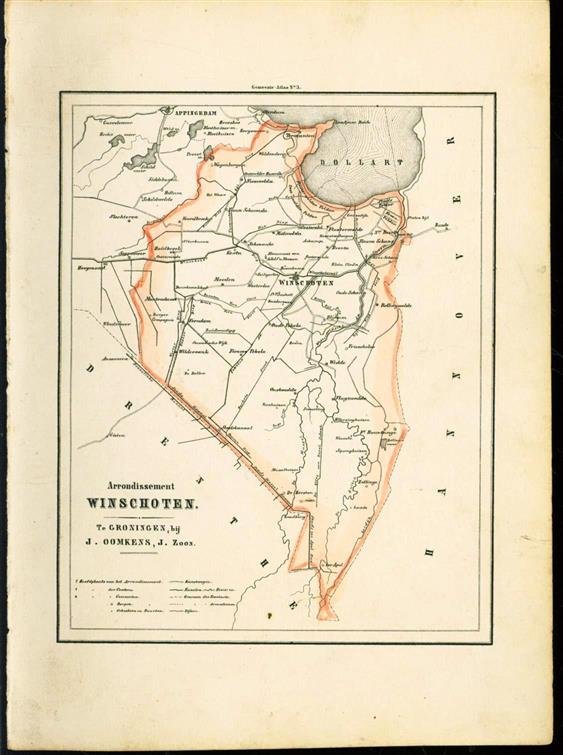 | Titel: | (GEMEENTE KAART - MUNICIPALITY MAP) arrondissement Winschoten te Groningen |