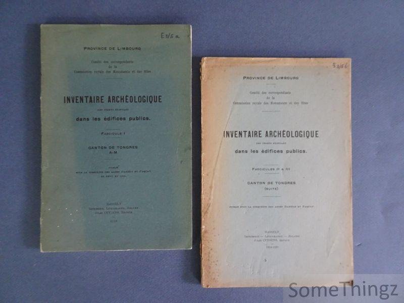 | Titel: | Inventaire archéologique des objets existant dans les édifices publics. Canton de Tongres. Fascicule I: A-M. Fascicules II et III: Suite. |