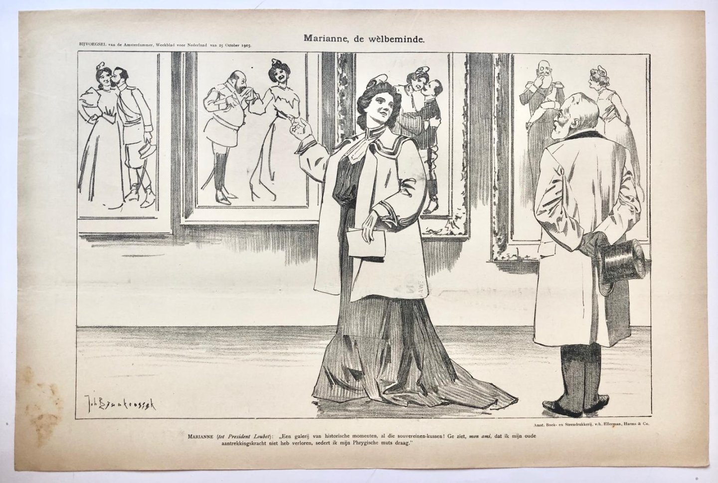 | Titel: | [Original lithograph/lithografie by Johan Braakensiek] Marianne, de wèlbeminde, 25 October 1903, 1 pp. |