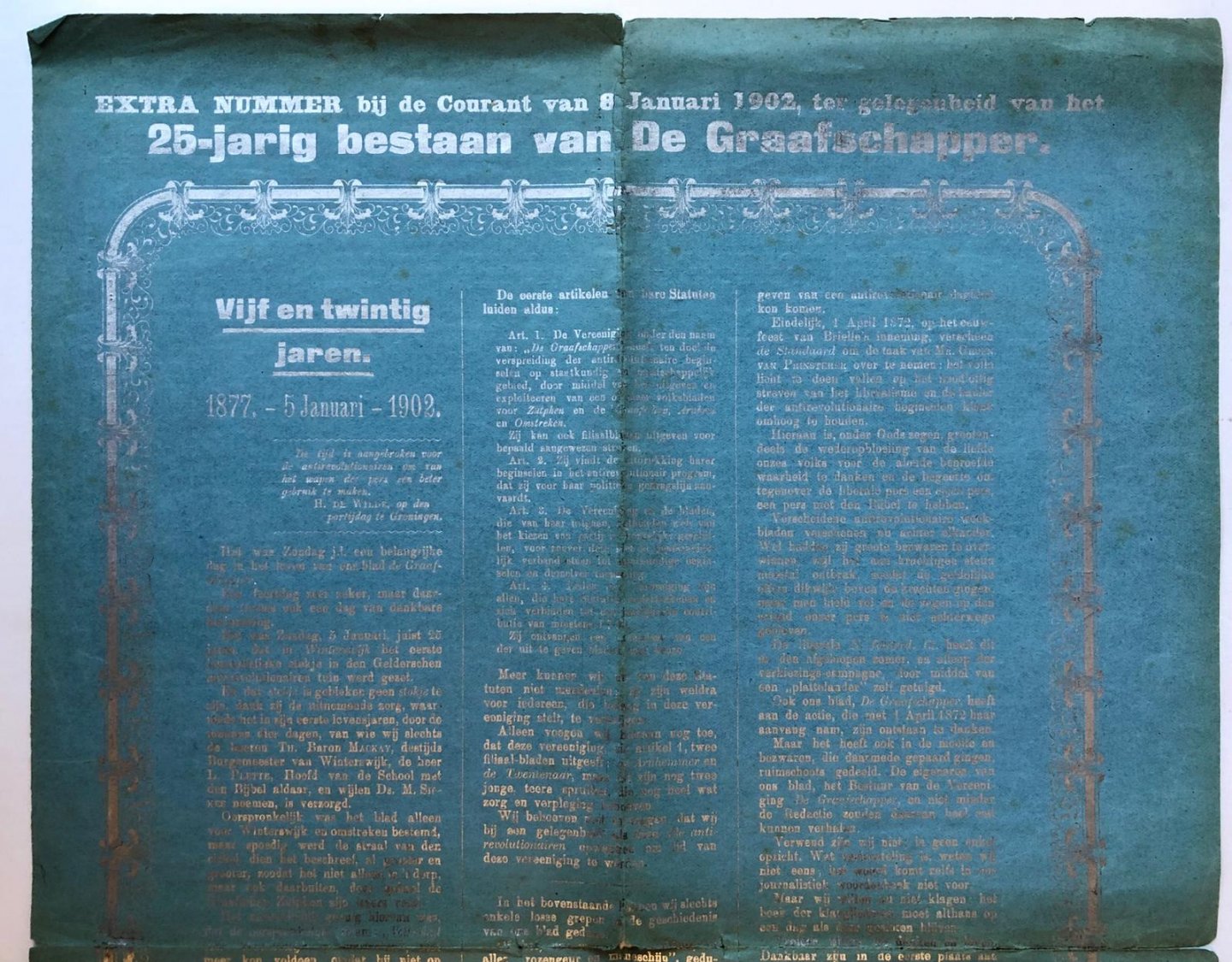 | Titel: | GRAAFSCHAPPER, DE Stukken betreffende het vijftigjarig jubileum van De Graafschapper, Christelijk Volksblad voor Oost-Veluwe, Zutphen en de Graafschap, 1877-1927, te Aalten. |