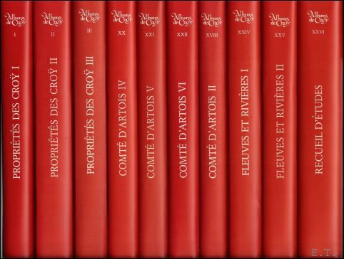 (all 26 volumes complet; Preface de Francois Narmon. PROPRIETES DES CROY: (1-3), I. Hainaut (Chimay-Beaumont) II. Hainaut (Avesnes), Ardennes francais III. In Brabant, Vlaanderen, Artesie en het Naamse. COMTE DE HAINAUT:(4-10), IV. Generalites (instructions religieuse) V. generalites (villes, pairies, etc.) VI. Prevotes de Mons et Soignies VII. Prevotes de Valenciennes, Chatellenie de bouchain VIII. Chatellenie d' Ath IX. Prevote de Maubeuge, bavay, Quesnoy, Landrecies X. Prevote de binche, bailliages du Roeulx, de Braine-le-Comte, Flobecq et Lessines, Engien, Hal. TOURNAI - TOURNAISIS:(11), XI. Institutions religieuses, villes et villages. LILLE-DOUAI-ORCHIES:(2), XII. Chatellinies de Lille, Douai, Orchies ( 1iere partie) XIII. Chatellinies de Lille, Douai, Orchies ( 2iere partie). COMTE DE NAMUR:(3) XIV. Institution religieuses, villes, mairie de Namur. XV. Bailliages de Bouvignes, Fleurus, viesville, wasseiges. XVI. Mairie de feix, bailliage de Samson, prevote de Poilvache. COMTE D' ARTOIS: (7), XVII. Generalites (Institutions religieuse et villes) XVIII. Gouvernace d' Arras ( 1ere partie) XIX. Gouvernace d' Arras ( 2ere partie) XX. Comte de Saint-Pol ( 1ere partie) XXI. Comte de Saint-Pol ( 2ere partie) XXII. Bailliages de Bethune et Lens XXIII. Bailliages d' Aire, Hesdin, Bapaume, Lillers. FLEUVES ET RIVIERES(1) XXIV. Sambre et Leys. XXIV. Escaut et Scapre. VOLUME FINAL: XXVI. Recueil d' etudes sur les Albums de croy. Table generale. XXVII; Villes et villages de la Belgique espagnole, 1596-1612 (1995) Etat neuf!! Jean-Marie Duvosquel (ed.), Albums de Cro , 26 vols.,