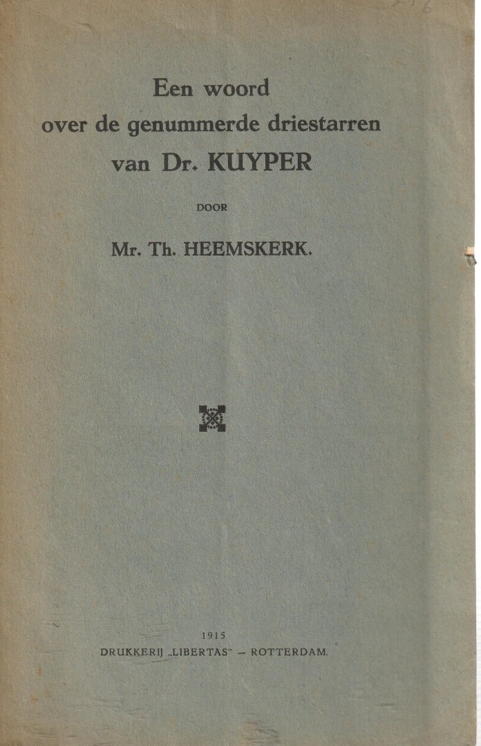 Heemskerk, T. - Een woord over de genummerde driestarren van Dr