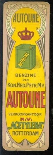 | Titel: | (BOEKENLEGGER / BOOKMARK) Autoline - Benzine der Kon. Ned. Petr. Mij.AUTOLINE Verkoopkantoor N.V. Acetylena Rotterdam |