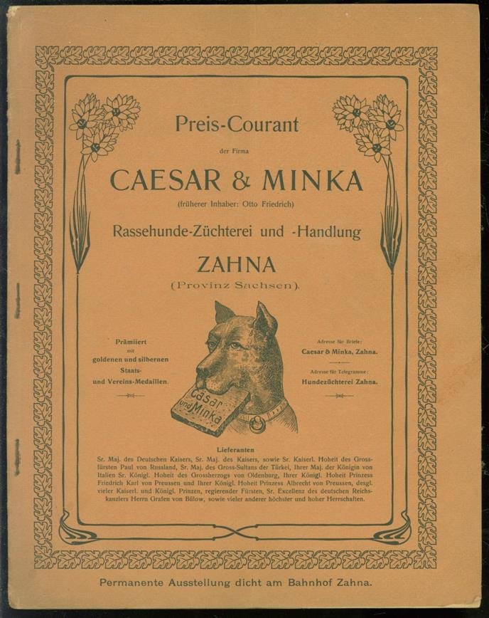 | Titel: | (BEDRIJF CATALOGUS - TRADE CATALOGUE) Preis-Courant der Firma Caesar Minka ... : Rassehunde-Züchterei u. -Handlung : Zahna, Provinz Sachsen. |