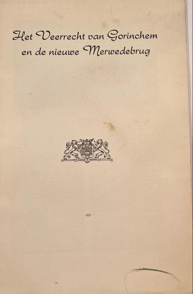 | Titel: | [Legal, Gorinchem, 1961] Het Veerrecht van Gorinchem en de nieuwe Merwedebrug, Ter gelegenheid van de in gebruikstelling van de nieuwe verkeersbrug over de Merwede door Hare Majesteit de Koningin op 15 maart 1961 wordt deze door de archief-amb... |