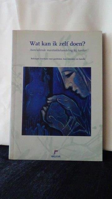 | Meer info: | Wat kan ik zelf doen? Aanvullende maretakbehandeling bij kanker. Beknopte brochure voor pati?nten, hun vrienden en familie. l Weleda. Zoetermeer 2004. Br. 64 pp. Bijna nieuw. |