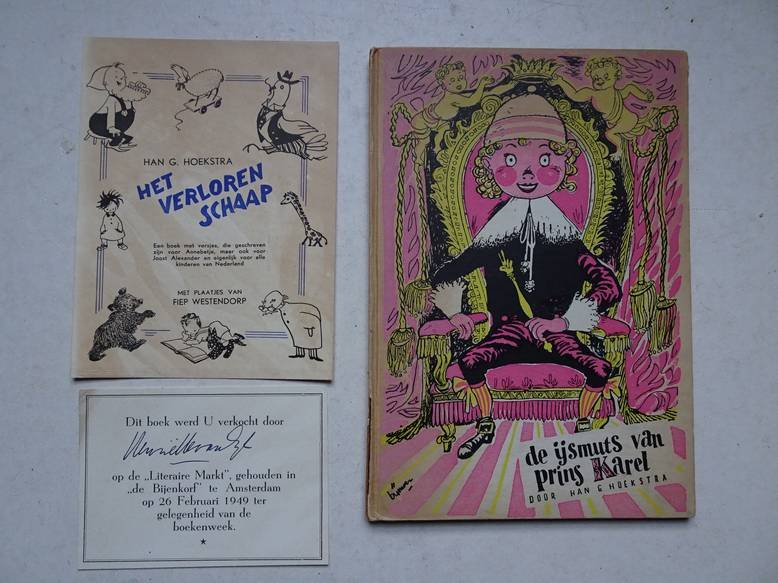 | Bijzonderheden: | 1949; J.M. Meulenhoff; gekartonneerd; met plaatjes van Wim Bijmoer; gesigneerd door Han G. Hoekstra; met 2 bijlagen: kaartje gesigneerd door Henriëtte van Eyck, n.a.v. de Literaire Markt t.g.v. de Boekenweek in 1949 en: een inlegvel n.a.v. de uit... |