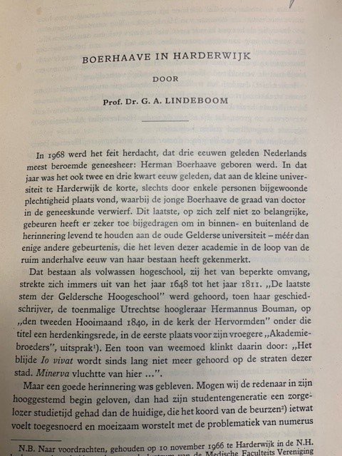 LINDEBOOM, G.A., - Boerhaave in Harderwijk.