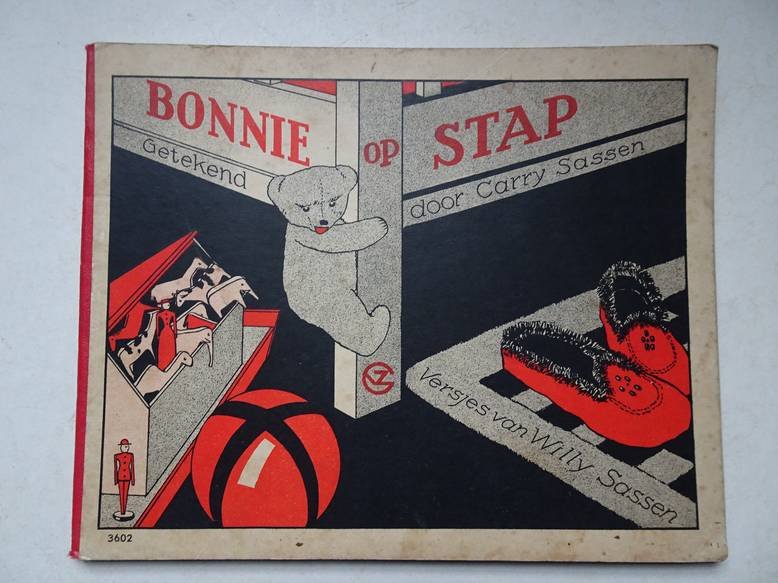 | Bijzonderheden: | zonder jaar; G.B. van Goor Zonen's uitgeversmaatschappij; halflinnen; met versjes van Willy Sassen; gelithografeerde ill. in de kleuren rood, zwart en wit door Carry Sassen; ongepagineerd. |