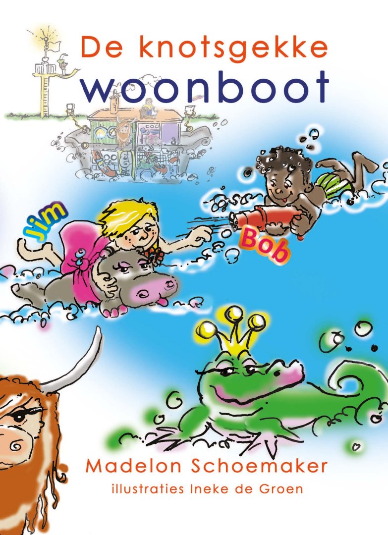 Jims vader en moeder zijn gescheiden. Zijn vader is naar Braziliƫ verhuisd en Jim heeft hem al meer dan twee maanden niet gezien of gesproken. Hij maakt zich zorgen. Wat zou er aan de hand zijn? Gelukkig heeft hij veel afleiding. Hij woont met zijn moeder en beste vriend Bob op een zeer bijzondere woonboot met een trampoline als duikplank. Een keuken vol heerlijke dingen, naast hun bed een waterglijbaan, een hangmat aan het plafond, een filmkamer met sterrenhemel, een klimmuur en een skateboardkamer. Beleef spannende avonturen met zombies en watermonsters en ontdek wat er met zijn vader is gebeurd. Waar wacht je op? Kom snel spelen!\n\nInhoudsopgave\n\nHoofdstuk 1 De knotsgekke woonboot\nHoofdstuk 2: De ontsnapte zombies\nHoofdstuk 3: De kwal\nHoofdstuk 4: Een nacht op het eiland\nHoofdstuk 5: De inbreker met het rode oog\nHoofdstuk 6: Bram en Boef vermist\nHoofdstuk 7: De vogeldief\nRecepten\n\nTekst: Madelon Schoemaker\nIllustraties: Ineke de Groen