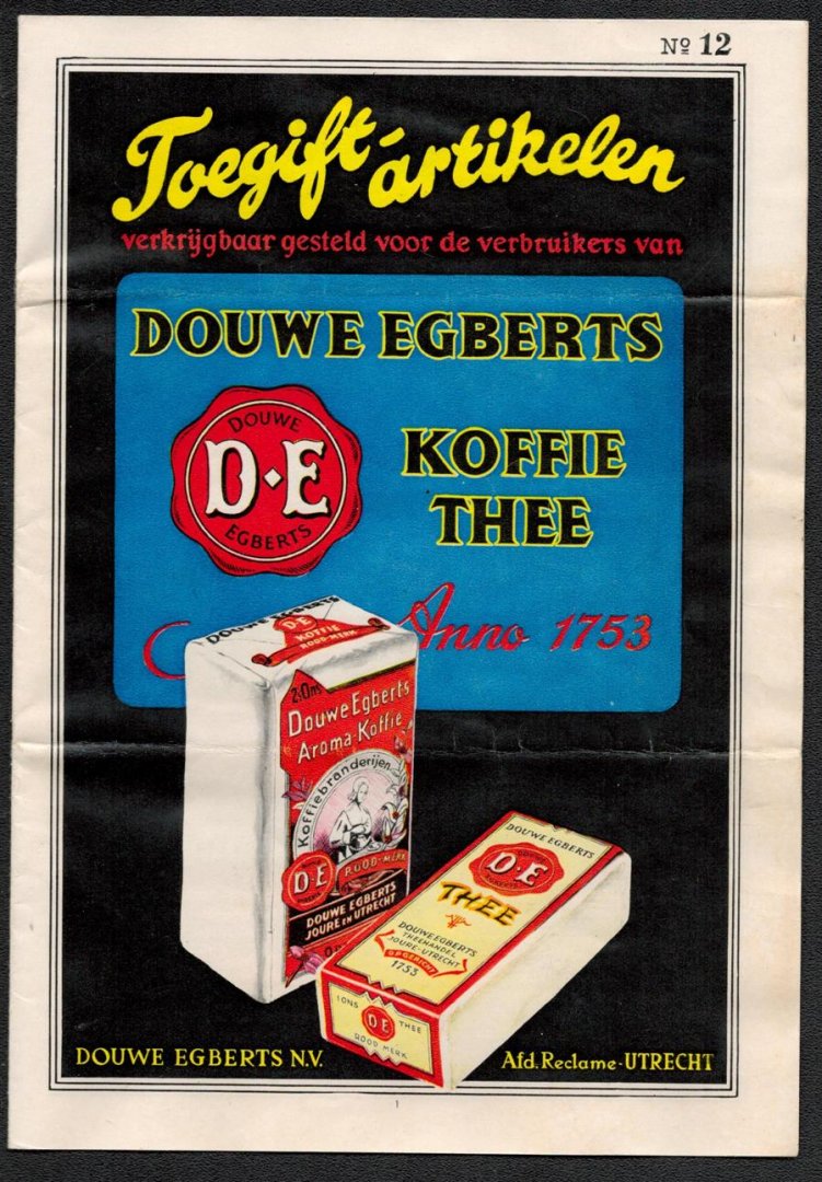 | Titel: | (BROCHURE) Toegift artikelen ( No 12 ) - Verkrijgbaar gesteld voor de verbruikers van Douwe Egberts Koffie Thee anno 1753 |