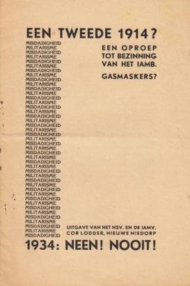 | Titel: | Een tweede 1914? Een oproep tot bezinning van het IAMB. Gasmaskers? Misdadigheid militarisme - 1934: neen! nooit! |