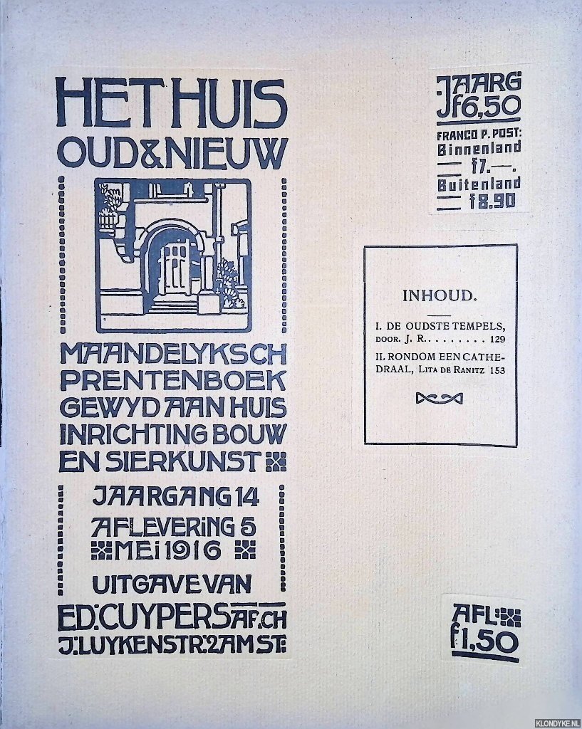 | Titel: | Het Huis, Oud & Nieuw. Maandelyksch prentenboek gewyd aan huis, inrichting, bouw en sierkunst. Jaargang 14, aflevering 5, mei 1916 |