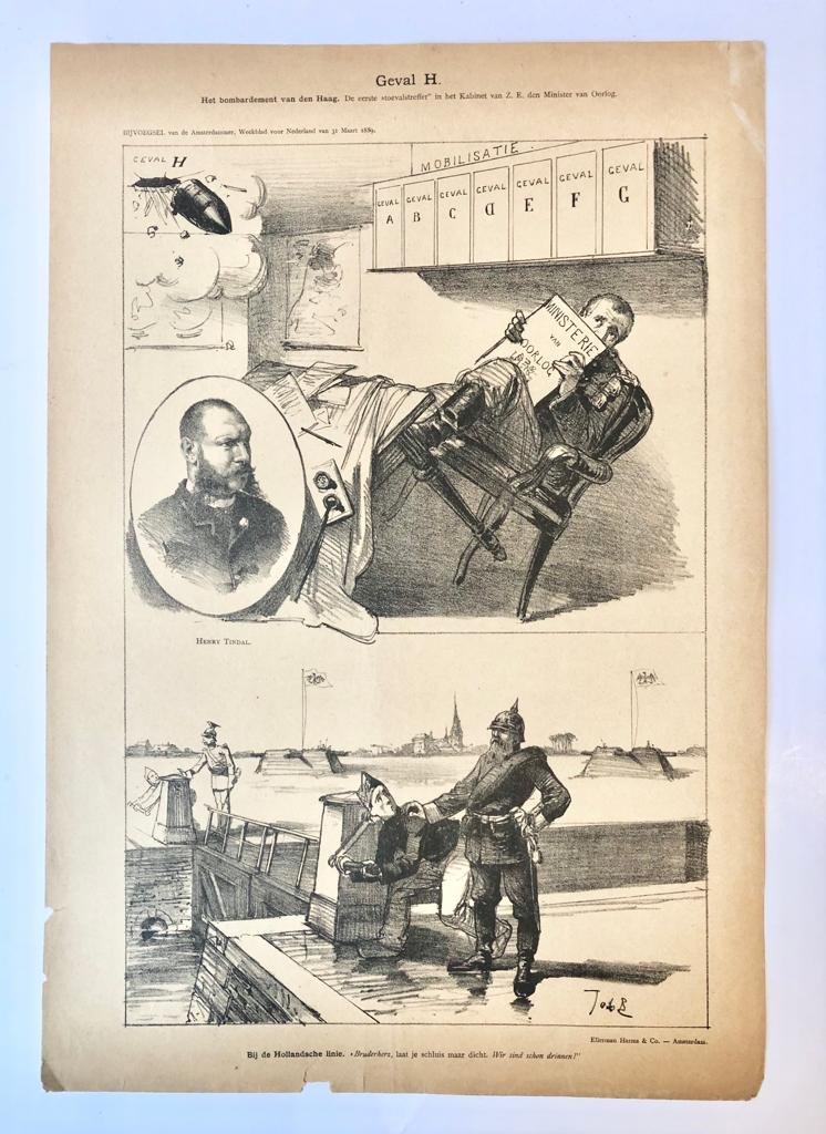 | Titel: | [Original lithograph/lithografie by Johan Braakensiek] Geval H. 31 Maart 1889, 1 pp. |