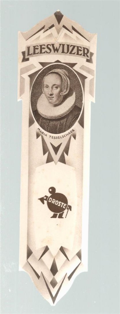 | Bijzonderheden: | c 1935, Als nieuw, Leeswijzer van Droste met afbeelding van de schrijver Maria Tesselschade en het ‘nieuwe’ logo van Cassandre - 7,2x4,8Cm. |