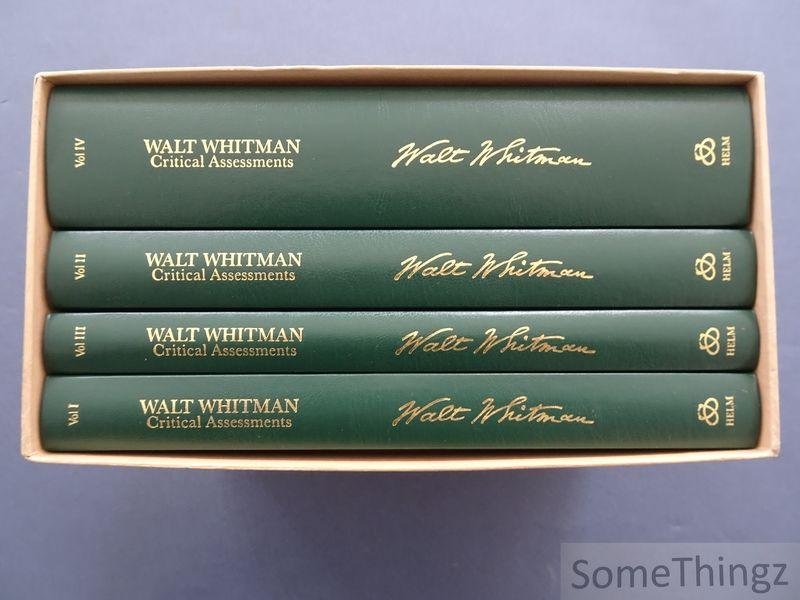 | Titel: | Walt Whitman Critical Assessments. Vol.I: The Man and the Myth: Biographical Studies. Vol.II: The Response to Writing. VOL.III: Writers on Whitman's Writing. Vol.IV: Walt Whitman in the Twentieth Century: A Chronological Overview. |
