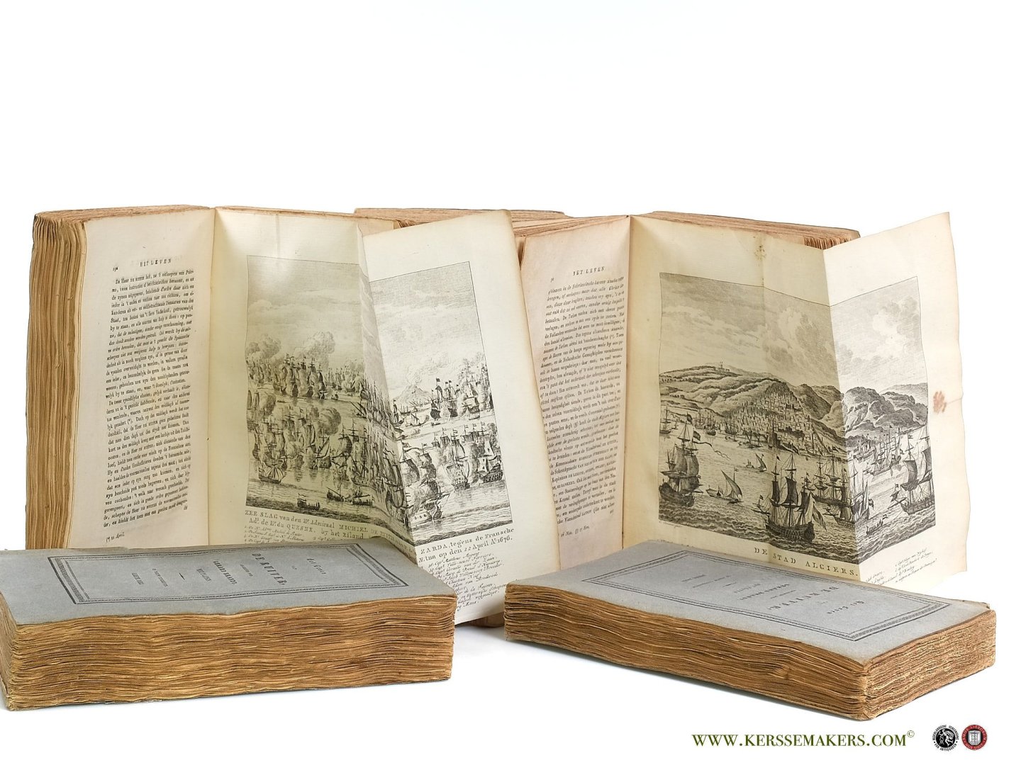 vol. II: (ii),xiii,(i: Berigt),456 pp. (brown spots in places), with folding plate "de stad Algiers"; vol. III: (iv),342,(ii)pp. with folding plate "Rochester and Chatham"; vol. IV: (iv),485,(iii) pp. with folding plate "Zeegevecht bij Kijkduin"; vol. V: xix,(i),399,(i) pp. with 2 folding plates "Zeeslag Sicilien" and "Lijkstatie" and full-page plate "Grafstede". `- Good set with all the plates, engraved by Vrijdag (2)and Brouwer (7).