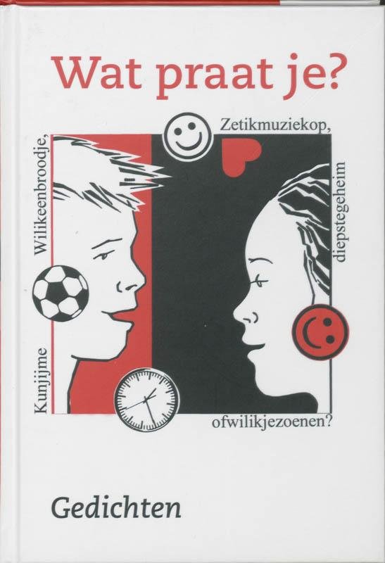 Wat praat je?GedichtenIn deze bundel vind je stoere, grappige en mooie gedichten. Ze gaan over voetbal, dieren, verliefdheid, straattaal en nog veel meer. De gedichten zijn geschreven door Frank Eerhart, Karel Eykman, Hester van de Grift, Netty van Kaathoven, Leonie Kooiker, Casper Markesteijn, Lizzy van Pelt, Jan Stroeve, Johan Struik en Rian Visser.Lisa Brandenburg, Hester van de Grift, Marijke Munnik en Froukje Stroeve maakten de illustraties.AVI M3 t/m AVI E5thema: gedichtenleeftijd: vanaf 10 jaarISBN 978-90-75689-53-2 E 13,50