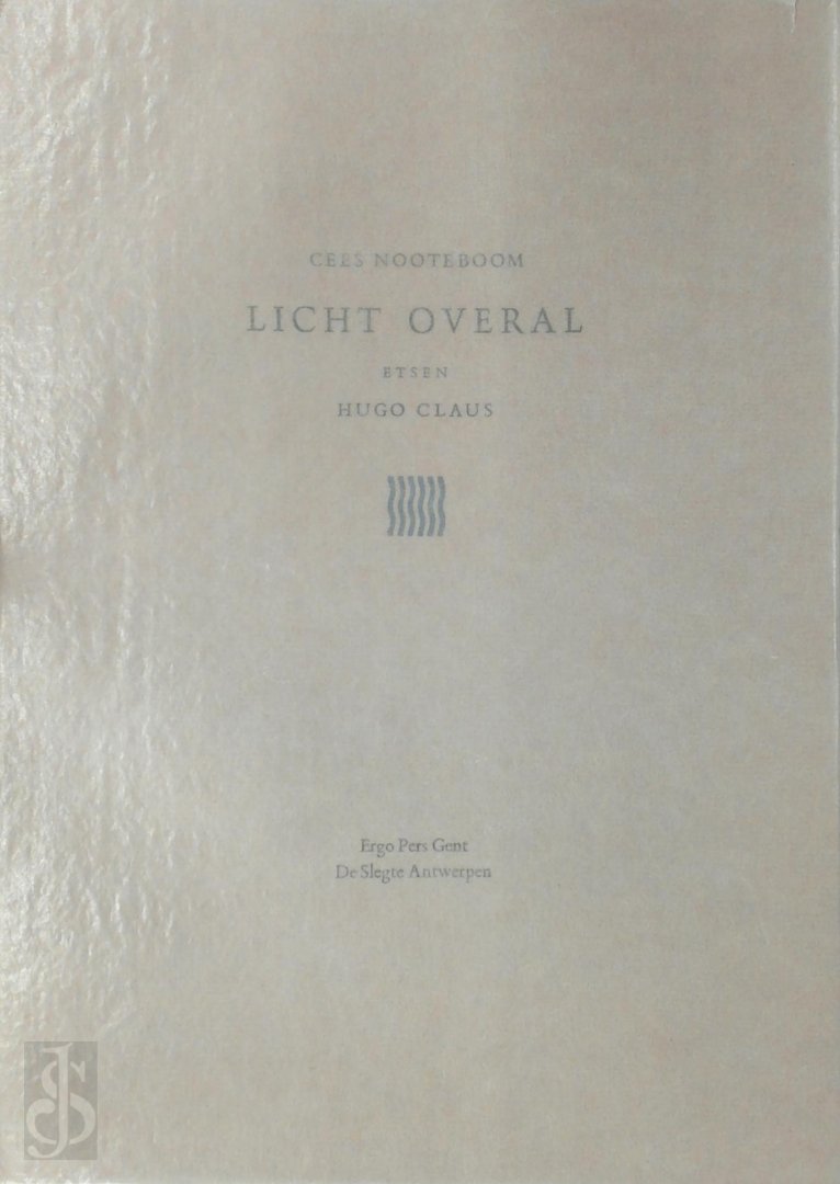 | Meer info: | 4to. ‘Licht overal’, met gedichten van Cees Nooteboom en vier etsen van Hugo Claus verscheen in de herfst van 2007 als gezamenlijke uitgave van Antiquariaat de Slegte Antwerpen en Ergo Pers Gent. Cees Nooteboom schreef twaalf nieuwe gedichten waarbij Hugo Claus drie etsen tekende. |