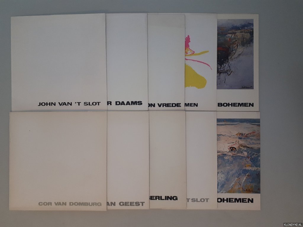 | Titel: | 10 uitnodigingen voor tentoonstellingen bij Galerie Delta Rotterdam: John van 't Slot; Jasper Daams; Anton Vrede; Cor van Domburg; Arie van Geest; Kees van Bohemen (3x); John van 't Slot; Bernd Koberling |