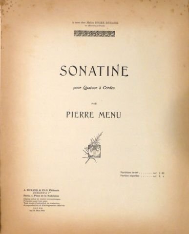 Menu, Pierre: - Sonatine pour quatuor à cordes. Parties séparée