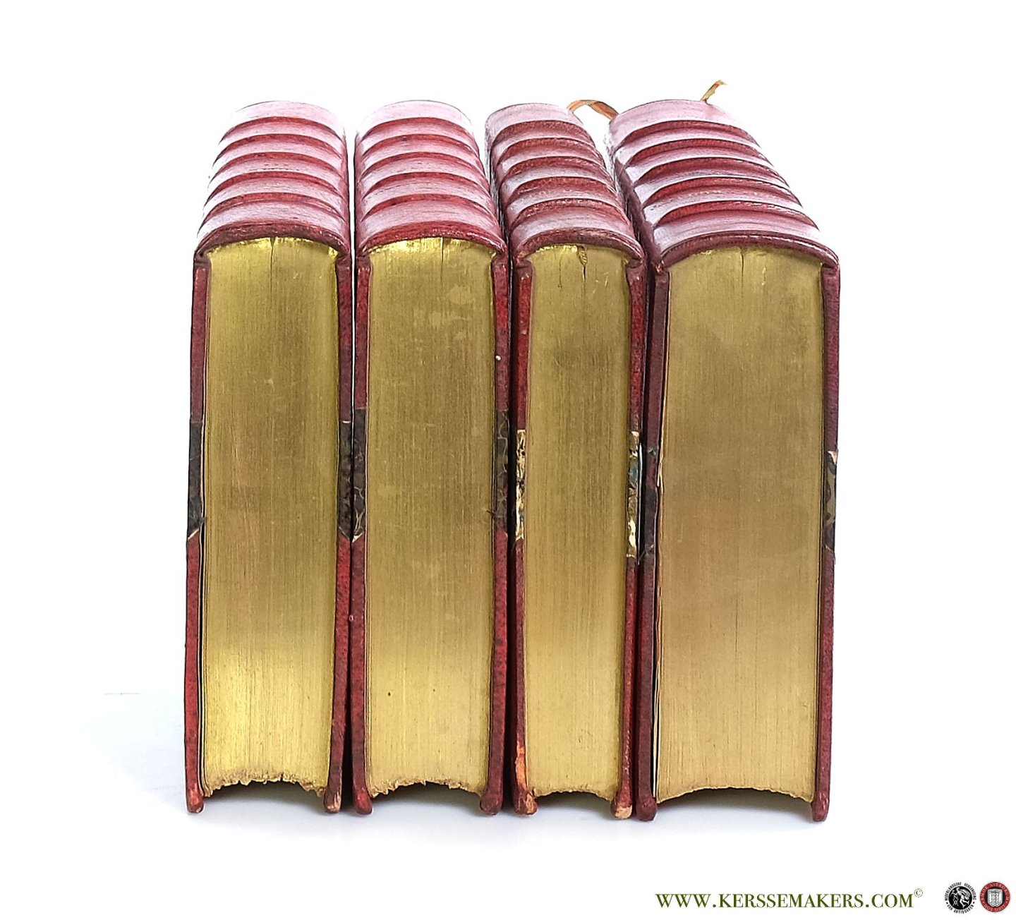 | Bijzonderheden: | (1900), 1901, 1904, (1913), 4 vols. Red half leather hardcovers. 5 raised bands. Leather corners. Top edges gilt. Marbled covers and endpapers. xii,552 pp., xii,578 pp., iv,602 pp. & xvi,790 pp. |