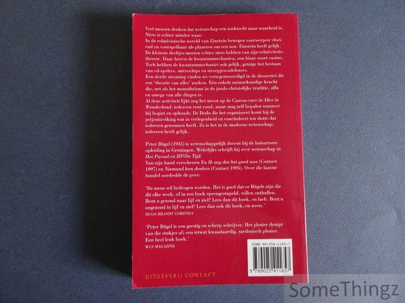 Veel mensen denken dat wetenschap een zoektocht naar waarheid is. Niets is echter minder waar. In de relativistische wereld van Einstein bewegen voorwerpen vloeiend en voorspelbaar als planeten om een zon. Einstein heeft gelijk. De kleinste deeltjs moeten echter niets hebben van zijn relativiteitstheorie. Daar heerst de kwantunmechanica, een bizar soort casino. Toch hebben de kwantummechanici ook gelijk, getuige het bestaan van cd-spelers, microchips en streepjescodelezers. Een derde stroming vinden we vertegenwoordigd in de theoretici die een 'theorie van alles' zoeken. Eén enkele natuurkundige kracht die, net als het monotheïsme in de joods-christelijke traditie, alfa en omega van alle dingen is. Al deze activiteit lijkt nog het meest op de Caucus-race in 'Alice in Wonderland': iedereen rent rond, maar mag zelf bepalen wanneer hij begint en ophoudt. De Dodo die het organiseert komt bij de prijsuitreiking wat in verlegenheid en concludeert ten slotte dat iedereen gewonnen heeft. Zo is het in de moderne wetenschap: iedereen heeft gelijk.