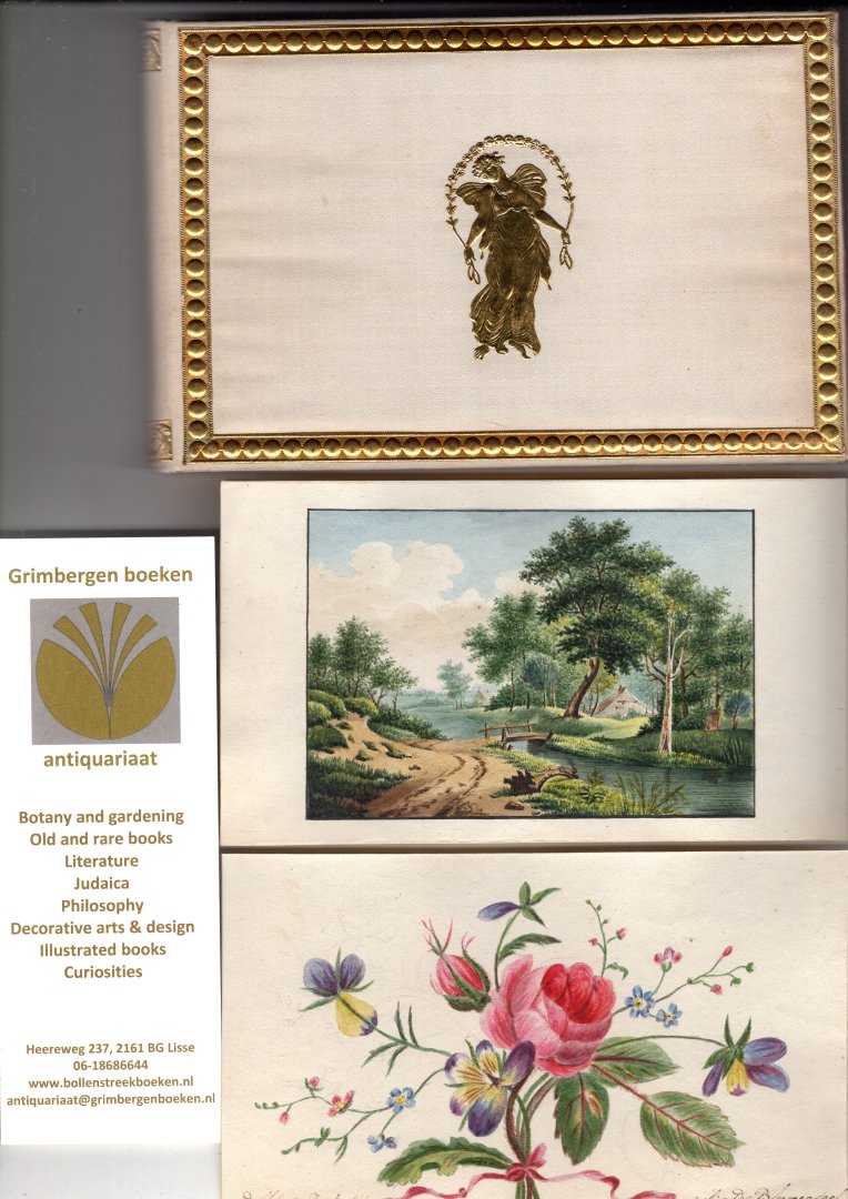 | Bijzonderheden: | Frederika Huberta van der Elst was born in Delfshaven in 1817. The contributions are on gilt edged laid paper, loose in contemporary padded white silk box in 12°. The box is richly decorated in gilt on the in and outside and decorated with a larg... |